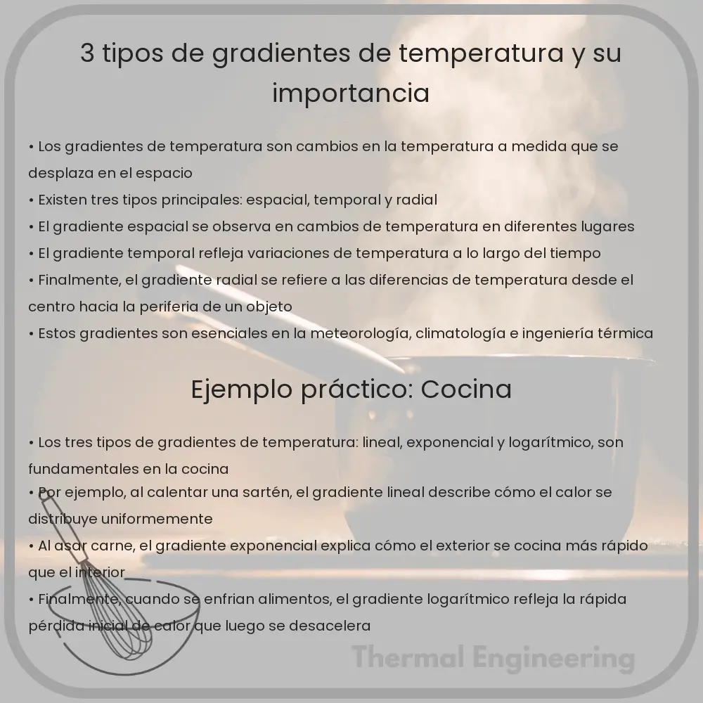 Aprende sobre los 3 tipos de gradientes de temperatura cruciales en la ingeniería térmica y cómo afectan la eficiencia y seguridad de los sistemas térmicos.