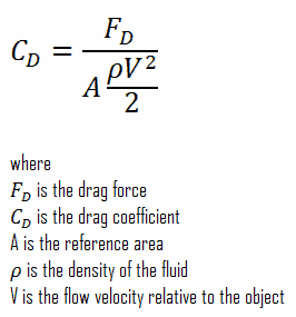As was written, the drag characteristics of a body is represented by the dimensionless drag coefficient, CD, defined as: